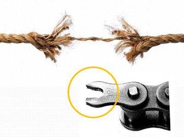 如上述椿本實測影片,鏈條破斷強度即為「被拉斷瞬間的強度值」,為一次性破斷