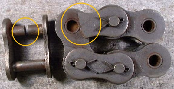 ↑ 左邊為定期給油的鏈條插銷(保持光亮平滑)