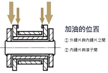 ? 定期為鏈條加油 除了可防止鏈條磨耗伸長,還可防止腐蝕