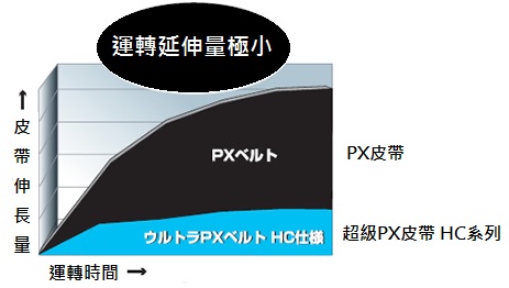 運轉(zhuǎn)延伸比PX皮帶減少一半,提高轉(zhuǎn)動和設(shè)備精度。