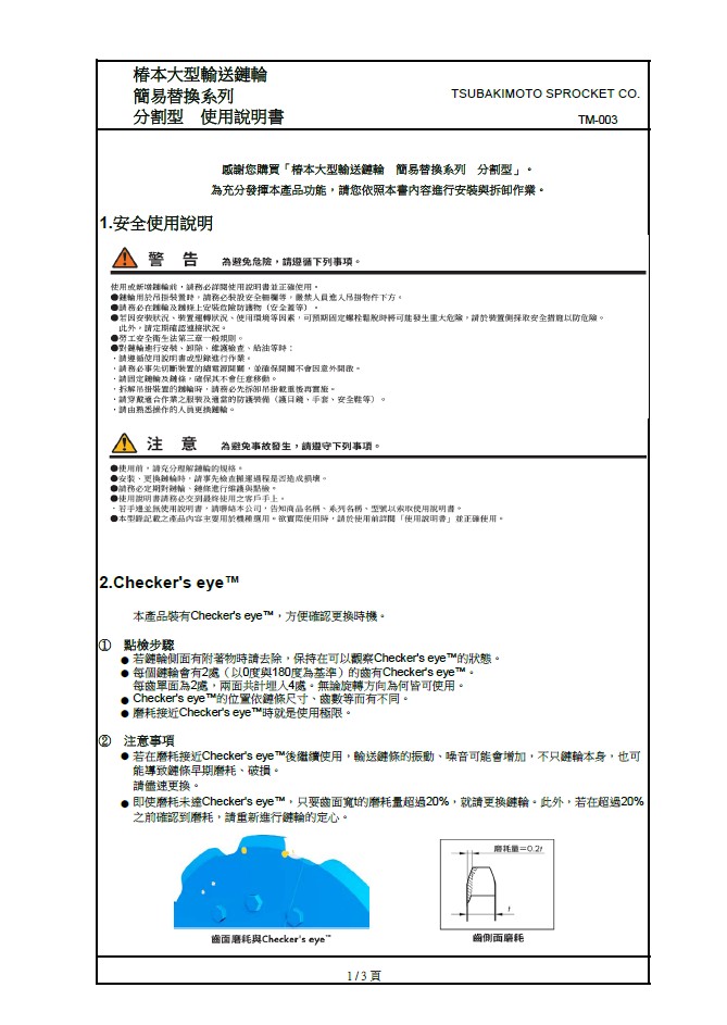 - 鏈輪的置換需要花費(fèi)許多工時,有時候還需要切除軸心;若是在高處作業(yè),還會有人員墜落的風(fēng)險。