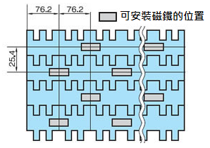- 鍊節(jié)內(nèi)嵌有磁鐵,可吸附輸送物(磁性體),可適用於磁性輸送