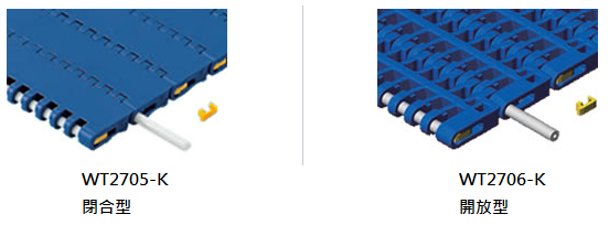 - 寬幅和窄幅的塑料模件組合成塊狀,輸送面寬闊,可進行大量輸送
